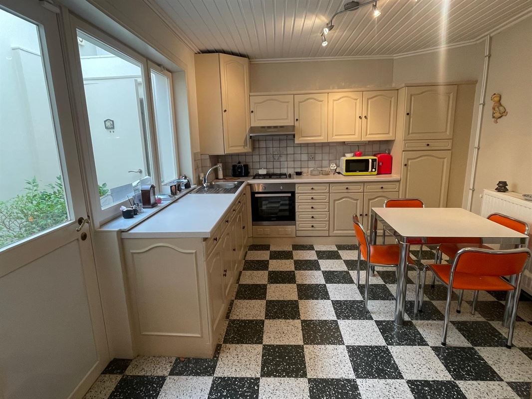 Deze gezellige rijwoning dient op termijn energetisch gerenoveerd te worden (ramen/dak + elektriciteit), maar is eigenlijk zo goed onderhouden dat ze ook instapklaar is. Beneden is er een aangename living met daarachter een vrolijke eetplaats en een ruime keuken. Er is een klein overdekt koertje met een toilet. Boven zijn er 2 ruime kamers met daartussen een ruime dressing en badkamer met bad. Tevens is er nog een zolder en kleine kelder. De grond voor het huis is privatief, dus parking verzekerd! En dat op een toplocatie nabij stad, Stayen en het station!